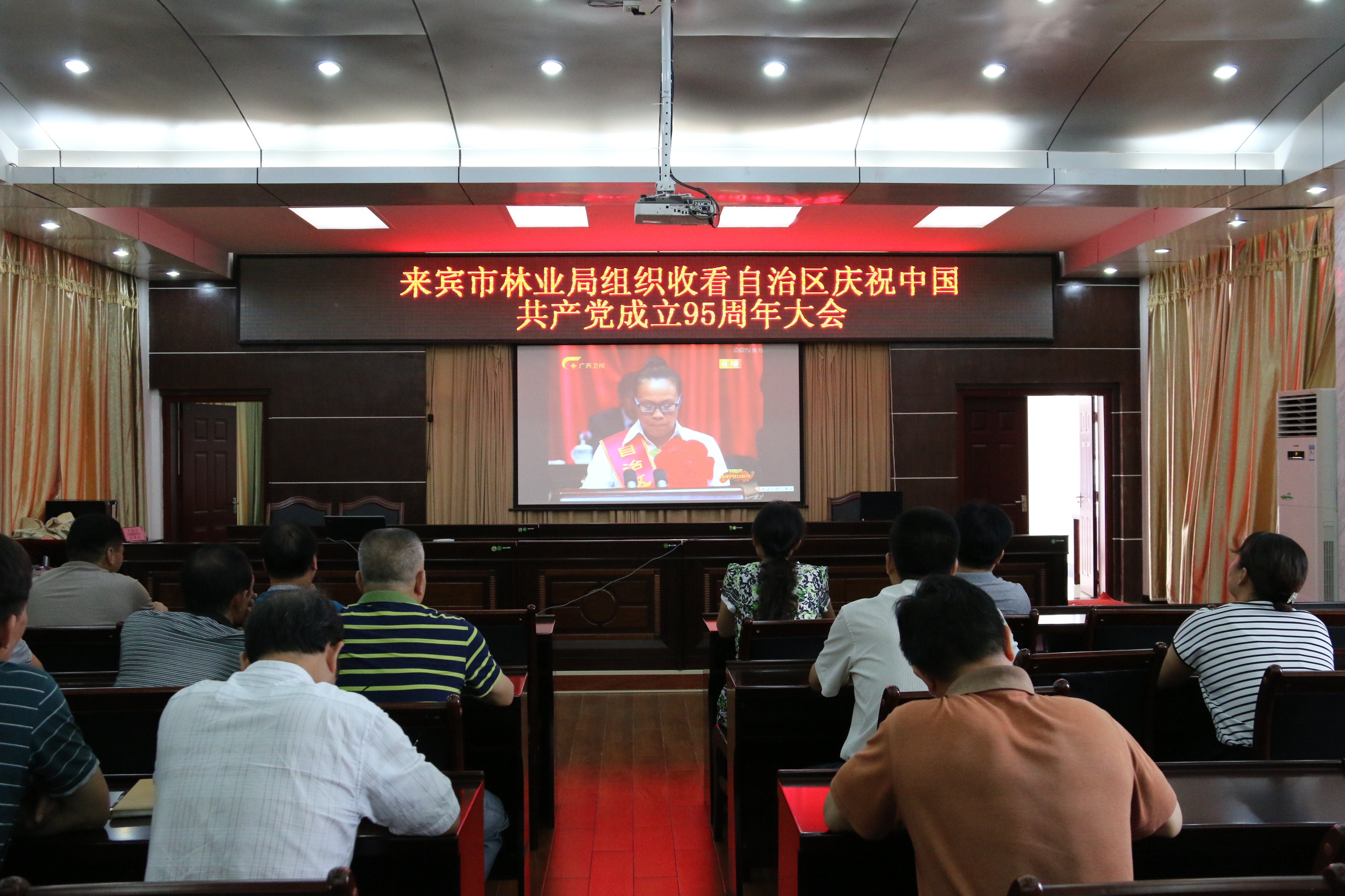 6月30日上午,bt365博彩手机版组织全体党员收看自治区庆祝中国共产党成立95周年大会现场直播,观后,局党组要求各党支部全体党员要认真学习彭清华书记在会议上的重要讲话精神,以及学习受表彰的全区优秀共产党员、优秀党务工作者和先进基层党组织的先进事迹,对照先进查找不足,树立工作努力方向,从而推动来宾林业事业顺利发展。(bt365博彩手机版 韦乐祖)