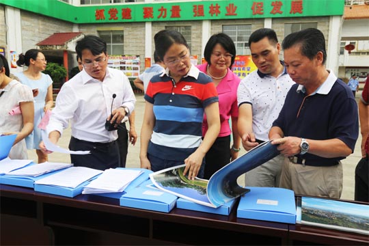 来宾市委常委、宣传部部长、副市长韦凤云,市人大常委会副主任韦文智等参会人员聆听市林业局相关负责人讲解
