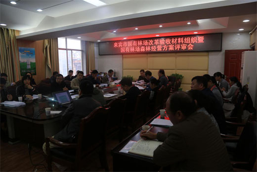 11月29日,来宾市国有林场改革验收材料组织暨国有林场森林经营方案评审会在市林业局召开。会议由市林业局总工程师韦昌能主持,分三项议程进行:一是听取各国有林场改革验收自检工作完成情况汇报;二是部署市级组织验收工作;三是组织对各国有林场编制的森林经营方案进行集中评审。
