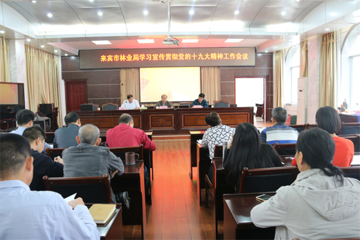 11月7日,bt365博彩手机版召开全体干部职工会议,学习宣传贯彻党的十九大精神。会议要求,全体干部职工要牢固树立“四个意识”,紧密团结在以习近平同志为核心的党中央的坚强领导下,不忘初心,牢记使命,开拓进取,扎实工作,以十九大精神为指导努力开创来宾林业发展新局面。