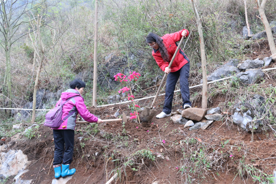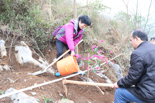 为响应市妇女联合会"植百年巾帼树,造家庭幸福林"义务植树活动号召,纪念"三八"国际劳动妇女节107周年,2017年3月7日,bt365博彩手机版班子领导及全体女干部职工等30多人在来宾市老梅沟森林公园内,开展2017年新春义务植树活动,种植三角梅幼苗100多株。